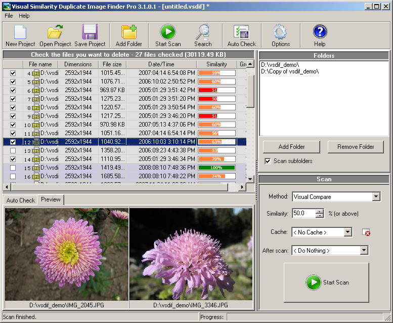 - Find all similar and duplicate pictures in user specified folders using visual compare